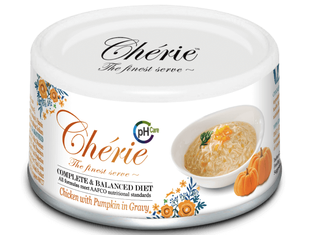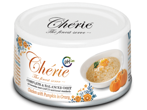 Formuła puszek Cherie łączy w sobie wysokiej jakości składniki, zapewniając doskonałe składniki odżywcze, dodane w celu uzyskania zdrowia dróg moczowych - pH moczu poniżej 6,8. Jest pyszne, bez zbóż, bez sztucznych barwników, aromatów i konserwantów. Ta kompletna pod względem odżywczym i zbilansowana dieta zapewnia Twojemu kotu to, czego potrzebuje do prawidłowego rozwoju.