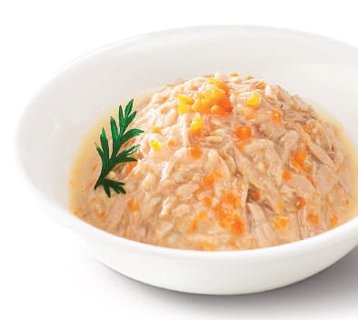 Skład: Tuńczyk, marchew, olej sojowy, substancje zagęszczające (skrobia modyfikowana E1422, guma guar E412), woda
