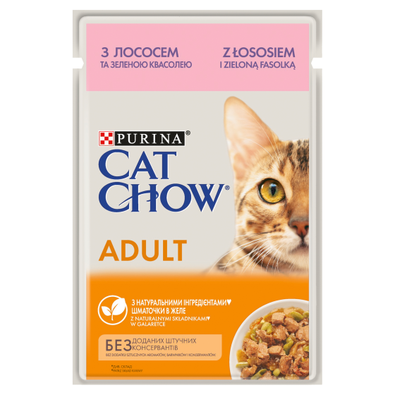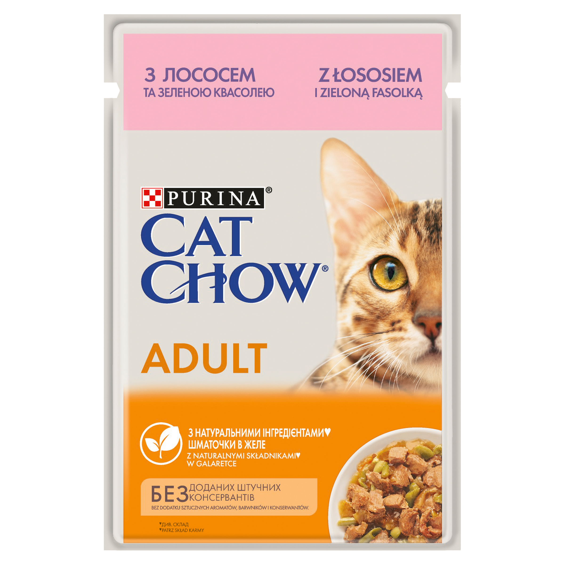 Purina Cat Chow Adult z łososiem i zieloną fasolką w galaretce 85g